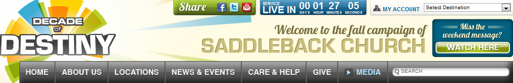 Consider Pastor Rick Unveils Plan for Decade of Destiny and Challenges the Men of Saddleback where we find: