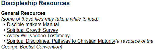 I return now to presenting the actual evidence; the below was shot today at the website of the State Board of Missions of the Alabama Baptist Convention (SBC) under recommended Discipleship Resources:
