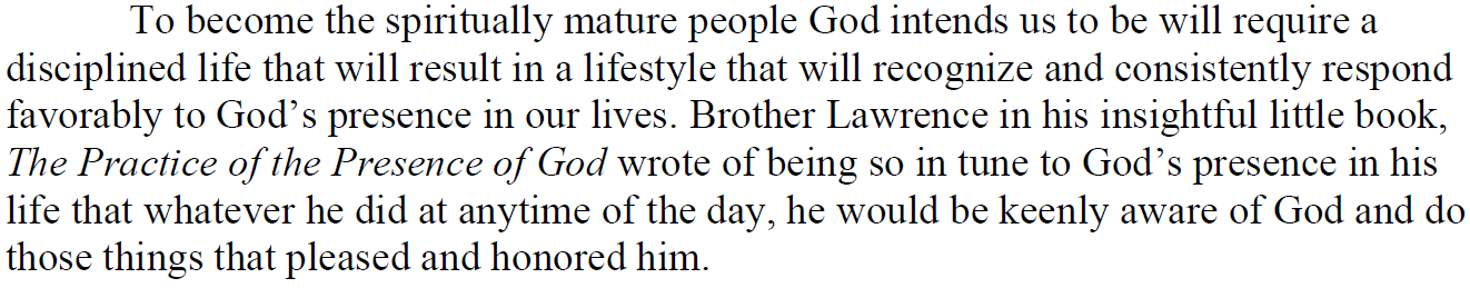 Where to start; we see a reference to the meaningless phrase “practice God’s presence” that forms the diseased heart of “Brother” Lawrence’s book. No human being can practice attributes of Deity; it’s as absurd as practicing walking on water or resurrection from the dead. God is always present to the Christian, He already dwells within us. As someone who’s been in the ministry field of Comparative Religion, and has studied mysticism for many years, I can tell you this paper pushed by SBC outlets ABC and GBC is really quite naïve.
