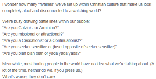 O that sounds so pious; I can almost hear the applause. But what P-P Furtick neglects to point out is that God has told us why unbelievers, as we also once were, don’t care about what it is Christians are speaking of: S-I-N. And further: