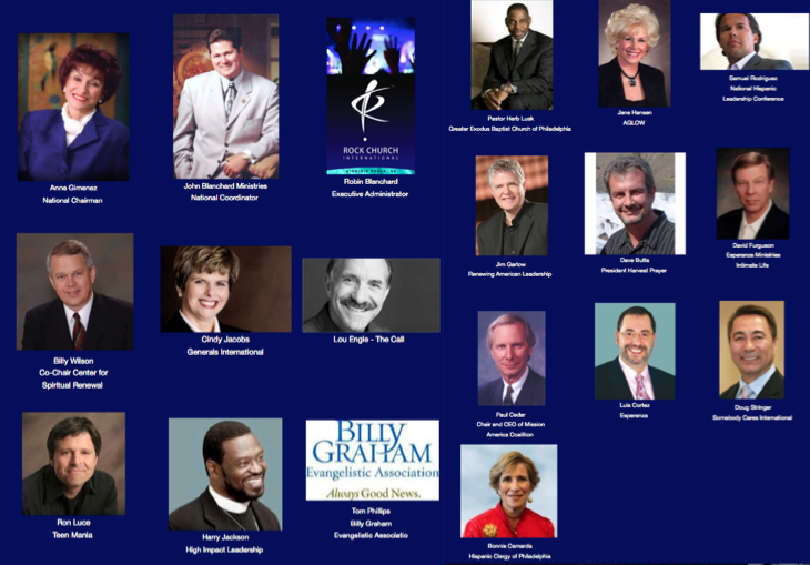 Source As you can see, the movement began when “God” allegedly spoke to bishop John Gimenez. Gimenez passed away in 2008, but his ministry and church, Rock Church International in Virginia Beach, continue on under the leadership of his wife. Anne Gimenez, who claims her own special anointing, was ordained at the age of 19. Rock Church International claims to be an “apostolic ministry” and is part of the broader Rock Ministerial Fellowship, which also was founded by the couple. The purpose of Rock Ministerial Fellowship “is to provide apostolic covering to local churches and ministries” (source). Not only, then, is this organization as well as Rock Church led by a woman in direct violation of Scripture, but they also purport that the office of apostle continues today. Anne Gimenez is the National Director for the AFJ 2012 event. A quick glance at the leadership team for AFJ reveals an unmistakable reality that many of these individuals are associated with what is known as the New Apostolic Reformation (NAR).