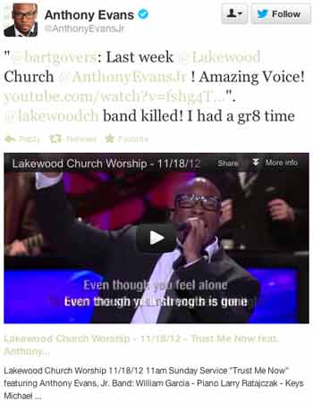 Evans, Jr. had retweeted the following comment concerning his performance at the Word Faith church Joel Osteen: